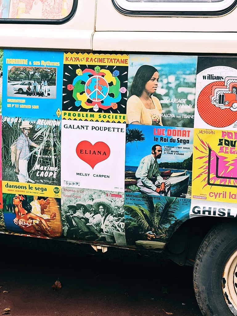 - Ce van est presque entièrement recouvert de pochette d’album de musique créole, réunionnaise, du Maloya au Séga . On peut les rencontrer lui et son conducteur le DJ Arnaud Bazin à travers des événements basés sur le principe de partage et d’échange, afin de continuer à faire vivre la musique qui a été laissée sur l’île de la réunion pendant plusieurs générations .